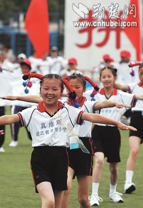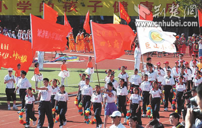 全國(guó)首屆希望小學(xué)運(yùn)動(dòng)會(huì)昨日在北京開幕,來自大別山下英山縣石頭嘴鎮(zhèn)希望小學(xué)的20名學(xué)生代表,向首都觀眾展現(xiàn)了湖北少年勤奮好學(xué),勇于拼搏的形象。據(jù)了解,中國(guó)青少年發(fā)展基金會(huì)發(fā)起實(shí)施希望工程15年來,已資助250多萬(wàn)名農(nóng)村貧困學(xué)子,援建希望小學(xué)萬(wàn)余所。湖北日?qǐng)?bào)記者 王威 攝