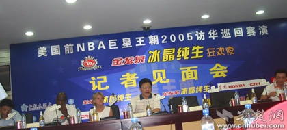 荊楚網(wǎng)消息(記者吳彬彬)美國前NBA巨星王朝2005年訪華巡演記者見面會于今天下午3:20在武漢弘毅酒店召開。