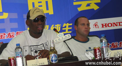 羅德曼和經(jīng)紀人戴瑞.普林斯在見面會上
