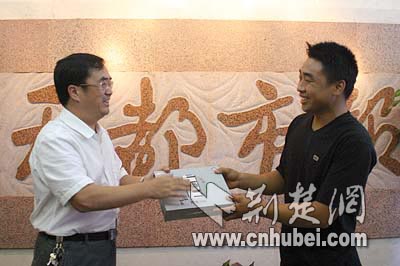 湖北日?qǐng)?bào)報(bào)業(yè)集團(tuán)總編輯江作蘇為荊州的幸運(yùn)讀者送上時(shí)尚多媒體手機(jī),他是讀報(bào)有獎(jiǎng)活動(dòng)的第四位幸運(yùn)讀者,一大早就和女朋友從荊州趕往武漢,他告訴記者,從活動(dòng)開(kāi)始他就一直在發(fā)短信答題,每天都要發(fā)好幾條。