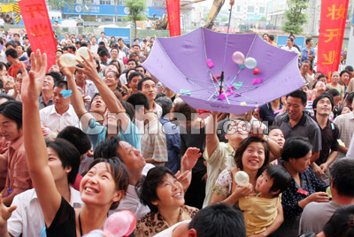 位于銷品茂北側(cè)的中商百貨銷品茂店昨日也同時(shí)開業(yè)。為吸引顧客眼球,中商百貨還在開業(yè)慶典時(shí)送出了1個(gè)價(jià)值7000元的鉆戒和5條鉑金項(xiàng)鏈,6位市民搶得“好運(yùn)”。