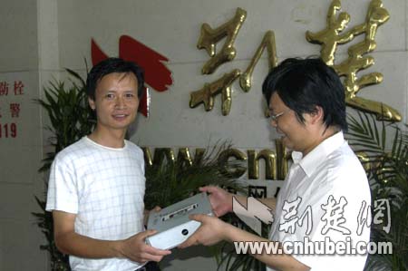 荊楚網(wǎng)副總編輯黃斌給武漢劉先生頒獎