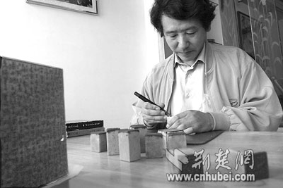 荊楚網(wǎng)(楚天都市報)(記者沈秋黃泳波實(shí)習(xí)生沈雙)左手持凍石,右手執(zhí)刻刀。昨日,在記者面前,僅用了1分鐘,柴有煒便如行云流水般刻出一方甲骨文印章。