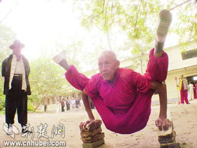 昨日,由武漢市體育局主辦的首屆體育廟會(huì)在武漢市青少年宮開幕。各種中國(guó)傳統(tǒng)體育項(xiàng)目紛紛登場(chǎng)初賽、表演。尤其是一些絕技絕活,如心房頂戟、后腦斷磚、朝天蹬、九節(jié)神鞭等,驚險(xiǎn)刺激,令觀者嘖嘖稱奇。記者劉大家、胡彩麗攝影報(bào)道