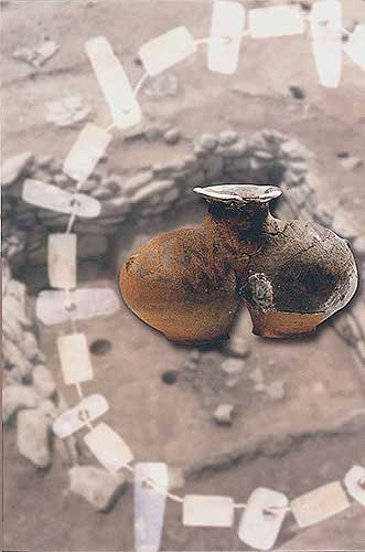 大理石和粘土巖制項飾:裝飾品(背景右,長52厘米)[相關(guān)鏈接]:20世紀(jì)中國百項考古大發(fā)現(xiàn)(1-20)21、大溪遺址(圖)22、城頭山遺址(圖)23、屈家?guī)X遺址(圖)24、崧澤遺址(圖)25、馬家窯遺址(圖)26、柳灣墓地(圖)27、牛河梁遺址(圖)28、城子崖遺址(圖)29、良渚文化遺址群(圖)30、石家河遺址群(圖)31、陶寺遺址(圖) 32、王城崗遺址(圖)33、齊家坪遺址(圖)34、卡若遺址(圖)35、石峽遺址(圖) 36、東灣仔北遺址(圖)37、圓山遺址(圖)38、二里頭遺址(圖)39、東下馮遺址(圖)40、夏家店遺址(圖)