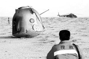 如今,“神舟”6號發(fā)射在即。與“神舟”5號相比,“神舟”6號的各種技術(shù)狀態(tài)又有質(zhì)的飛躍。為了滿足載人航天后續(xù)發(fā)展需要,我國已開始選拔培養(yǎng)首批女航天員。廣大航天工作者正在各自的崗位上,默默地奉獻(xiàn)著全部的心血和汗水。今后,他們還將用一個又一個飛天壯舉來證明中國人實(shí)現(xiàn)中華民族偉大復(fù)興的志氣、信心和能力! 2002年4月1日,“神舟”三號飛船在預(yù)定地域著陸。新華社發(fā)來源:《解放軍報(bào)》