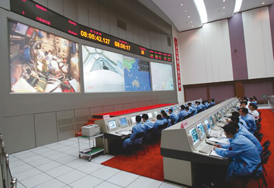 酒泉指控中心,一雙雙眼睛專注地盯著屏幕。一位特殊的工作人員———楊利偉,也在緊張地注視著這段對他來說熟悉而又陌生的旅程;