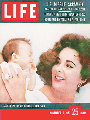 1957年,伊麗莎白·泰勒抱著和第三任丈夫、制片家邁克·托德所生的女兒麗莎·托德。這一年,她才25歲,已經(jīng)結(jié)過兩次婚。泰勒在結(jié)束第二段婚姻的兩天后就決定嫁給托德,可在1958年,托德死于飛機(jī)失事。