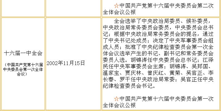 中共十六屆歷次中央全會