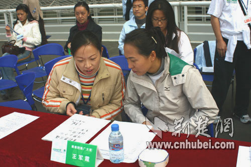 在和王軍霞的交談中得知這是她第二次來武漢,她說她對(duì)武漢的印象不錯(cuò),特別是群眾性的健身活動(dòng)。這次在現(xiàn)場(chǎng)看到有這么多的市民自愿來參加健康跑,她覺得很高興和欣慰,因?yàn)樗F(xiàn)在的身份就是健康跑的推廣大使,希望有更多的人參與在這項(xiàng)方便易行的活動(dòng)中去,增加體質(zhì),為國(guó)為民為自己。當(dāng)我告訴她是因?yàn)樗牡絹聿盼诉@么多的人來參加活動(dòng)時(shí),她覺得很驚喜!叭绻@樣能吸引更多的人,我想我的付出是值得的!”