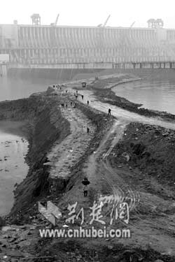 1993年10月,三峽工程一期圍堰在右岸開始施工。在中堡島左側(cè)及后河上下游修筑了一期土石圍堰,形成基坑。然后抽干基坑內(nèi)積水在圍堰保護下挖除中堡島,擴寬后河修建導(dǎo)流明渠和混凝土縱向圍堰,為大壩建設(shè)做準(zhǔn)備。1997年7月,完成任務(wù)的一期圍堰被拆除。