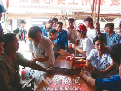 15日,參加武鋼工程建設(shè)的百余位農(nóng)民工兄弟,樂呵呵地接受了中國一冶電裝公司武鋼項(xiàng)目部為他們免費(fèi)進(jìn)行的體檢。浠水工程隊民工朱宗杰說:“這兩年來,社會各界對農(nóng)民工的關(guān)心很實(shí)在!