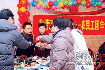 昨日中午,漢陽(yáng)區(qū)文明辦、建管站和勞動(dòng)局等部門請(qǐng)來(lái)40多名農(nóng)民工代表,和區(qū)領(lǐng)導(dǎo)一起吃年飯,這是漢陽(yáng)區(qū)“文明和諧社區(qū)建設(shè)迎春行動(dòng)”的系列活動(dòng)之一。