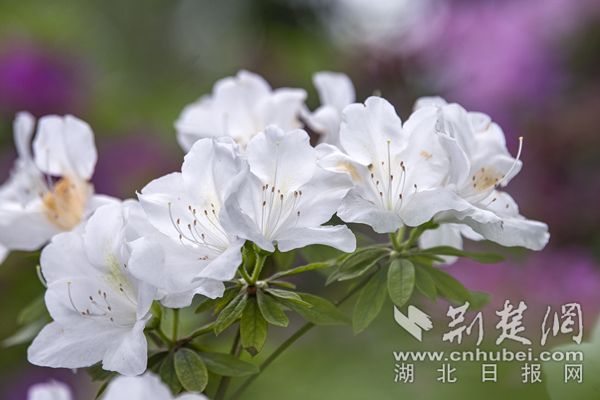 杜鵑花色艷麗,武漢植物園的杜鵑除紅色、紫色、粉色、白色等單色外,還有綠色杜鵑和復色杜鵑花。從國外引進的綠色杜鵑品種“綠色光輝”,花朵小巧玲瓏,色如碧玉,十分罕見。復色杜鵑“皇冠”花朵白粉相間,粉紅色鑲邊,素雅又不失顏色,一掃杜鵑的艷麗姿態(tài),既清新又迷人。