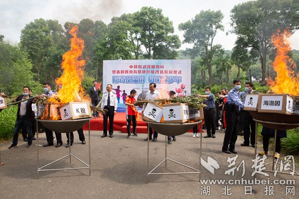 荊楚網(wǎng)(湖北日報(bào)網(wǎng))訊(通訊員陳長麗)5月21日上午,中科院武漢植物園舉行了禁毒科普教育基地升級改造開園儀式。經(jīng)過半年的升級改造,全新的罌粟活體展示區(qū)揭開面紗,升級后的禁毒教育基地在毒品原植物的展示和禁毒教育的形式上將更加豐富。正值國際禁毒日到來之際,現(xiàn)場還舉行了“防毒品濫用,做陽光少年”為主題的禁毒宣教活動,在社會公眾的見證下,青少年代表焚燒罌粟,向毒品說“不”。