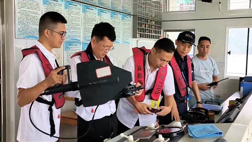 此外,無(wú)線電技術(shù)人員攜帶專業(yè)便攜移動(dòng)監(jiān)測(cè)設(shè)備,對(duì)臨江坪待閘錨地區(qū)域開展水上移動(dòng)電磁環(huán)境監(jiān)測(cè);檢查船舶甚高頻電臺(tái)(VHF)等無(wú)線電設(shè)備,核查設(shè)備是否取得型號(hào)核準(zhǔn),檢測(cè)設(shè)備發(fā)射的無(wú)線電頻率、帶寬等技術(shù)參數(shù),排查通信安全隱患。