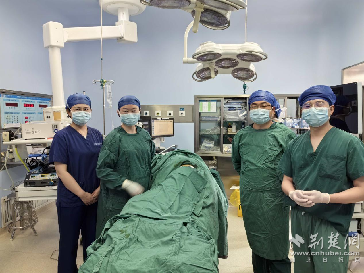 時間回到四個月前。今年5月,持續(xù)二十多天的血尿讓張爹爹輾轉(zhuǎn)求醫(yī),最終被孝感市中心醫(yī)院確診為疑似輸尿管惡性腫瘤,且腫瘤已侵犯髂總動脈?!袄先艘宦犚中g(shù)還要化療,情緒低落到拒絕治療?!泵谀蛲饪浦魅挝鹤炕貞洠麤]有急于推進診療,而是每天到病床前拆解病情、講解方案,家人也反復(fù)勸說,張爹爹才終于點頭同意手術(shù)。