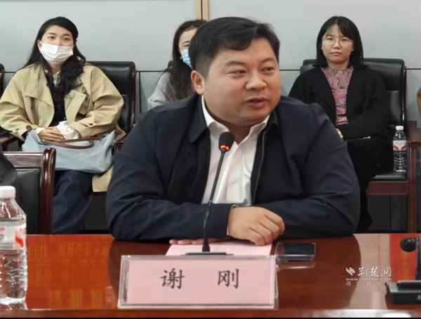 武漢鐵路職業(yè)技術(shù)學(xué)院黨委學(xué)工部部長謝剛介紹來訪團隊情況。 通訊員供圖