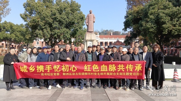 荊楚網(wǎng)(湖北日報網(wǎng))訊(通訊員 吳玲麗 王倩)為傳承紅色基因,凝聚奮進(jìn)力量,近日,武昌區(qū)黃鶴樓街道讀書社區(qū)黨委與新洲區(qū)徐古街道柳河村黨支部共同開展“城鄉(xiāng)攜手憶初心 紅色血脈共傳承”主題黨日活動。來自柳河村黨支部、讀書社區(qū)黨員代表、社區(qū)新就業(yè)群體及退役軍人等百余人參與活動。