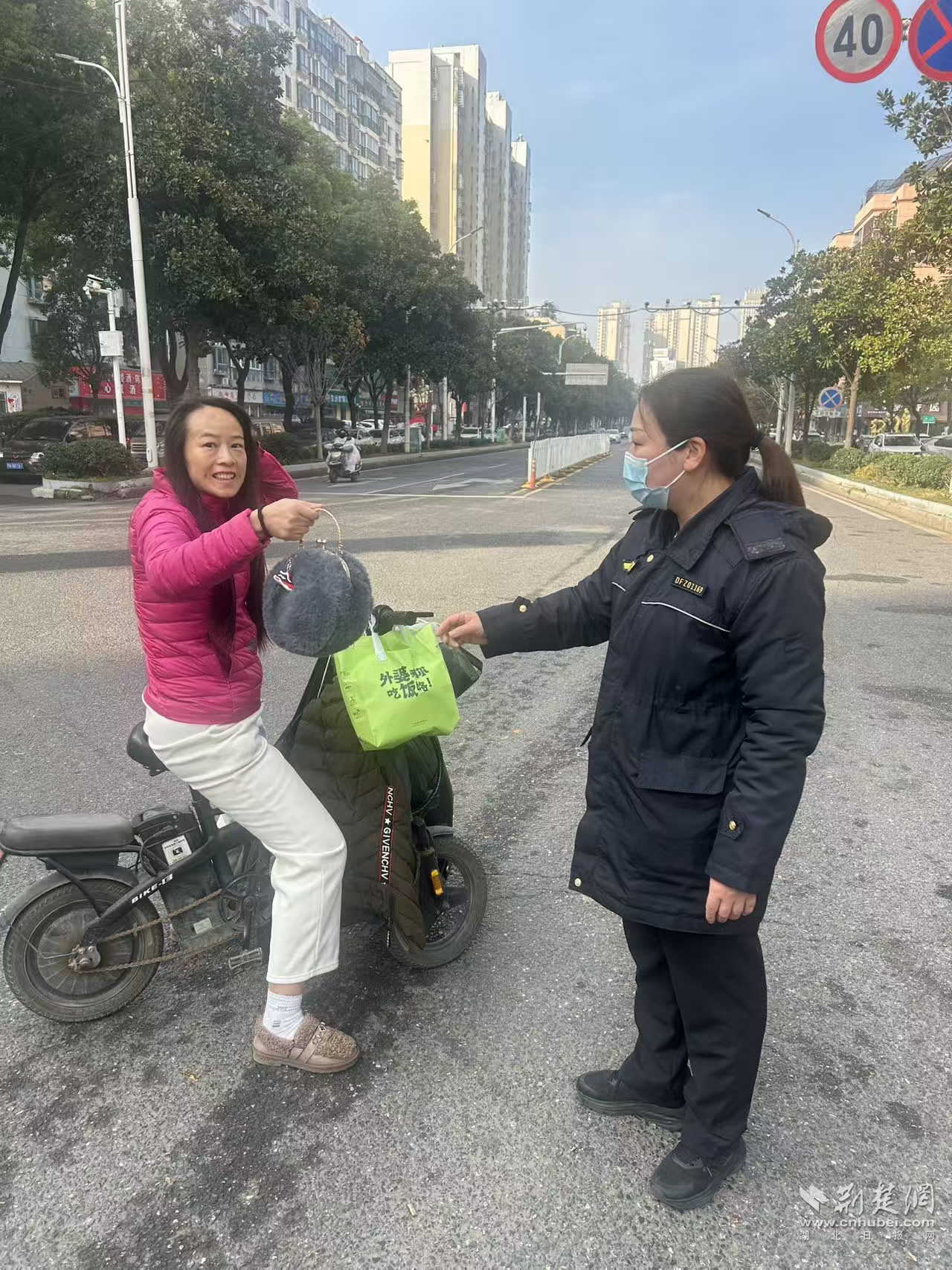 大約十分鐘后,一位40左右的女士行色匆匆、滿臉焦急地小跑過來,眼睛不停地在路面和四周搜尋著。執(zhí)法隊(duì)員張輝立刻主動(dòng)迎上前詢問:“您好,請問您是在找什么東西嗎?”果然,這位女士正是手提包的失主。原來,她是一早騎著小電驢車趕著去上班,途中不慎將手提包遺失,等到發(fā)現(xiàn)時(shí)已走遠(yuǎn)了好幾里路,這才心急如焚地原路折返尋找。