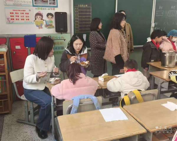“兩代表一委員”陪同學(xué)生一同進(jìn)餐。 通訊員供圖