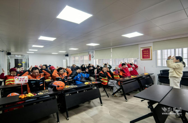 溫馨的生日儀式將活動推向高潮。當(dāng)插著蠟燭的生日蛋糕被緩緩?fù)浦林醒耄驹刚邽槊课粔坌谴魃峡蓯鄣纳彰?。燭光搖曳中,全場齊聲唱響《生日快樂》,壽星們閉目許下心愿,并一同切開象征甜蜜與祝福的蛋糕。隨后的茶話交流環(huán)節(jié),大家圍坐分享美食與姜茶,幾位戶外工作者代表講述了他們在寒冬中堅守崗位的溫暖點滴,話語中透著質(zhì)樸的擔(dān)當(dāng)與堅持。