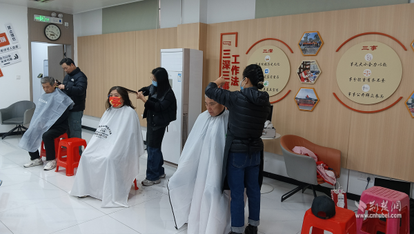 活動最后是便民服務環(huán)節(jié)。社區(qū)對接武昌“新興學院”天姿美容美發(fā)學校資源開展義務理發(fā)服務。志愿者們提前布置好服務區(qū),認真做好工具消毒,隨后耐心詢問每一位前來理發(fā)的流動黨員和老年人的需求,憑借嫻熟技藝為大家精心修剪發(fā)型?!安怀錾鐓^(qū)就能享受到這么好的服務,還能和黨員同志們一起學習交流,心里特別暖?!币晃粍偫硗臧l(fā)的老人滿意地說道?,F(xiàn)場洋溢著濃濃的鄰里溫情。
