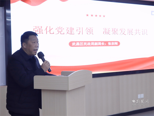 大會(huì)邀請武昌區(qū)民政局副局長講授專題黨課,課中闡述了社區(qū)社會(huì)組織的職責(zé)使命與發(fā)展路徑。