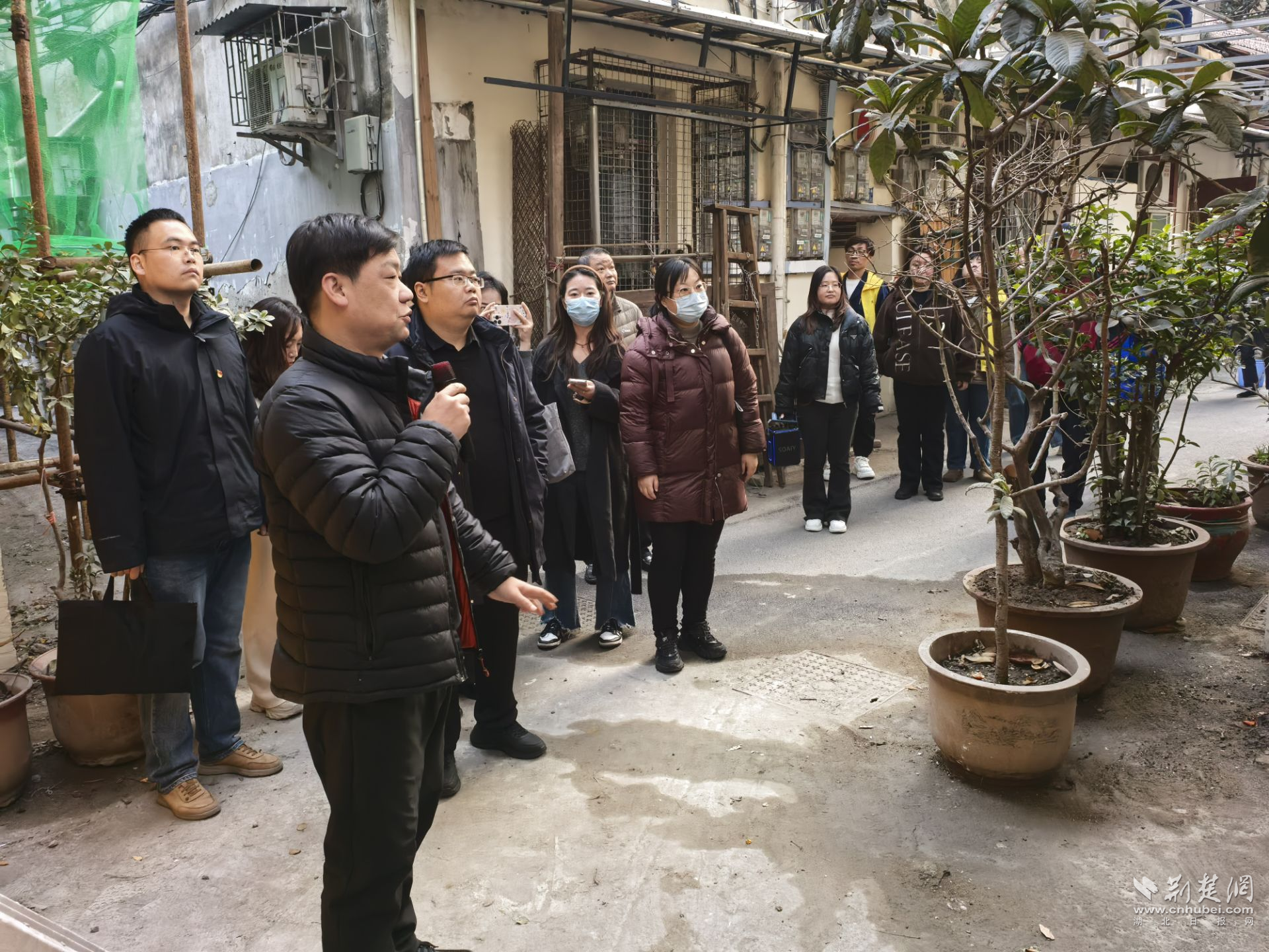 活動(dòng)首站,參會(huì)人員實(shí)地觀摩市級(jí)一類基層治理創(chuàng)新項(xiàng)目——肖家社區(qū)“古槐生香·老院煥新顏”項(xiàng)目。