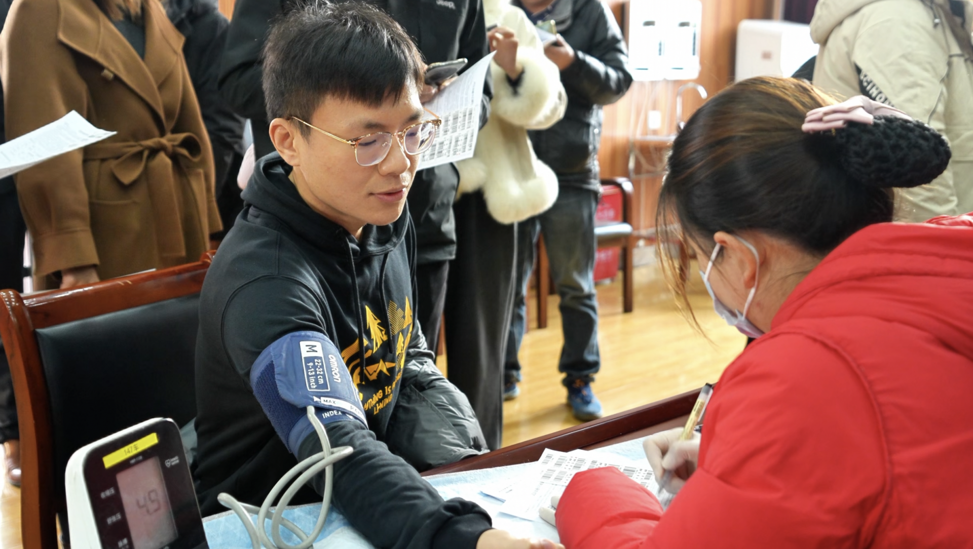 圖文:獻(xiàn)血者在進(jìn)行登記、體檢。