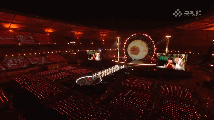 光,也是這場(chǎng)敘事中無(wú)聲的語(yǔ)言。燈光總監(jiān)董江從鴻蒙系統(tǒng)的開(kāi)機(jī)動(dòng)畫(huà)中汲取靈感,將極具辨識(shí)度的“星環(huán)”造型貫穿整個(gè)場(chǎng)館空間。設(shè)計(jì)團(tuán)隊(duì)不僅用數(shù)百臺(tái)燈光設(shè)備在舞臺(tái)上空構(gòu)建了一個(gè)直徑31米的超級(jí)光環(huán),更在體育場(chǎng)內(nèi)豎立起8組高達(dá)24米的立體燈光塔,讓每一位觀眾都被籠罩在“在一起”的視覺(jué)敘事之中。據(jù)總導(dǎo)演田梅介紹,那打動(dòng)了無(wú)數(shù)網(wǎng)友、點(diǎn)綴在觀眾席上的四萬(wàn)盞燈球,并非輕易鋪就的背景,而是歷經(jīng)超百位工人三次接力安裝、反復(fù)調(diào)試才得以呈現(xiàn)的呼吸光海。最初,這一設(shè)計(jì)曾因執(zhí)行難度而面臨調(diào)整,但在總導(dǎo)演田梅的堅(jiān)持下,最終被完整保留。在她看來(lái),這片星海是對(duì)盛典主題內(nèi)核的生動(dòng)詮釋?zhuān)骸啊谝黄穑涂梢浴粌H是一句口號(hào),更是對(duì)這個(gè)時(shí)代最溫暖的注腳。它告訴我們:再遙遠(yuǎn)的夢(mèng)想,也終將在并肩同行中,變得觸手可及。”隨著節(jié)目播出,燈球呈現(xiàn)出“在一起,就可以”“鴻蒙星光盛典”等字符,明亮而浪漫。四萬(wàn)星光分散在每一張座椅上,如同散落在千行百業(yè)、千家萬(wàn)戶(hù)中的每一個(gè)開(kāi)發(fā)者與用戶(hù);它們又能連成一片星海,展現(xiàn)出“在一起,就可以”的力量。
