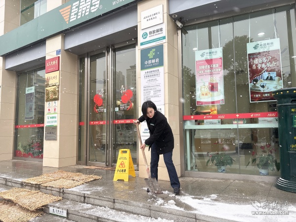 中國郵政武昌區(qū)分公司各網點員工清掃門前冰雪。 通訊員供圖