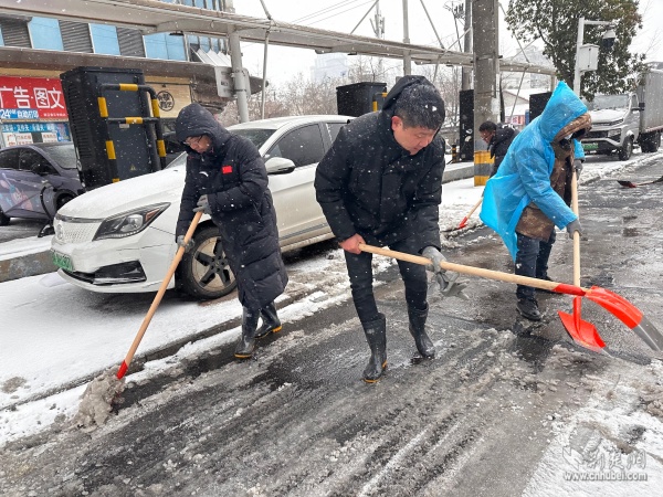 彭劉楊路社區(qū)工作者堅守除雪一線。 通訊員供圖