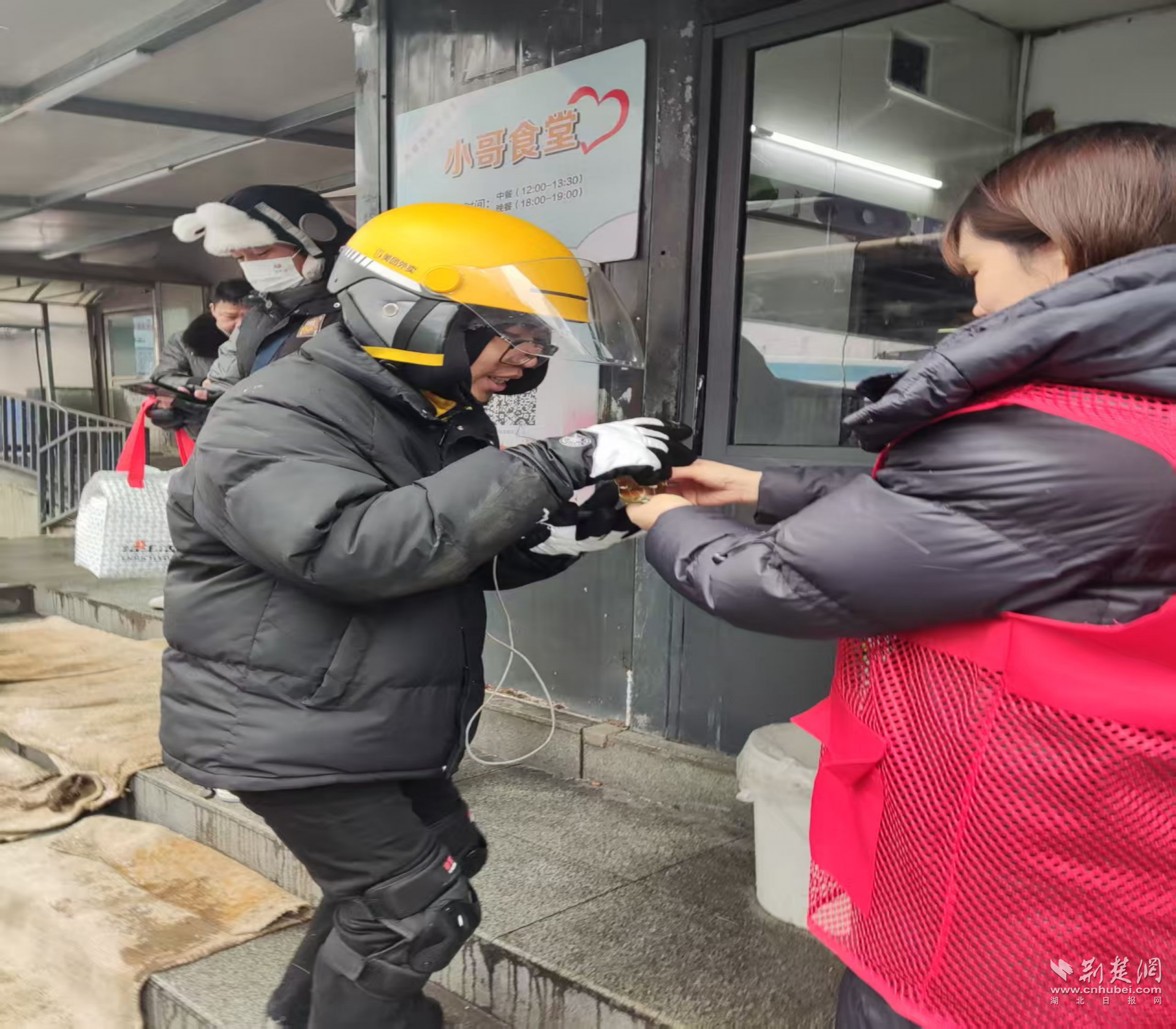寒潮來(lái)臨前后,江漢區(qū)各街道依托江城驛站、愛(ài)心商戶(hù)和“小哥食堂”等服務(wù)陣地,迅速將取暖、飲水、熱食等保障送到一線(xiàn)。