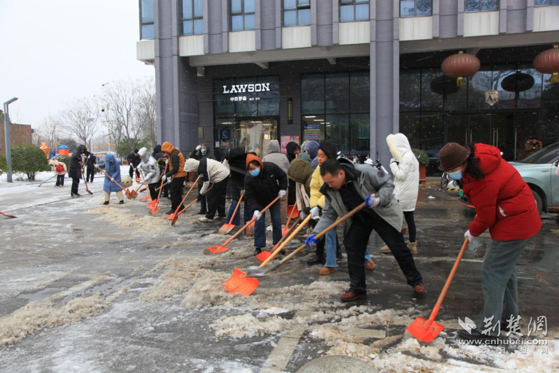 在黃陂區(qū)灄口、前川街道,街道綜合執(zhí)法中心通過“線上通知+線下走訪”的方式,強化沿街商戶“門前三包”責(zé)任制落實;在新洲區(qū)摩爾城、幸福時代等人員密集的商圈周邊道路,摩爾城商戶、周邊居民都在區(qū)城管執(zhí)法局清雪工作人員的感染下,自覺加入掃雪隊伍;在東湖風(fēng)景區(qū),執(zhí)法人員向沿街商戶發(fā)放《致全體武漢市民的掃雪除冰倡議書》,沿街商戶紛紛響應(yīng)“門前三包”責(zé)任,拿起工具主動清理門前積雪,形成了“各掃門前雪,共護出行路”的自覺氛圍;在蔡甸區(qū),蔡甸自來水公司自發(fā)組織干部職工,在公園路—樹藩大街包保路段開展鏟雪除冰工作,及時消除道路通行隱患。