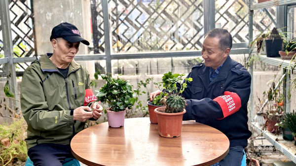 作為“春天鄰里服務(wù)隊”發(fā)起人之一和支部老黨員,周榮良是看著這些變化一點點發(fā)生的。最早動員大家時,他領(lǐng)著幾位老黨員,挨家挨戶敲門,話也說得實實在在:“咱們一起試試,先清出一小塊地也行?!庇腥丝矗腥藛?,可更多的鄰居還是打開了家門——退休的居民搬出了家里不用的花盆;做水電工的師傅答應(yīng)幫忙安裝澆水的水管;連剛上學的小孩子,也捧來了自己養(yǎng)的小多肉。