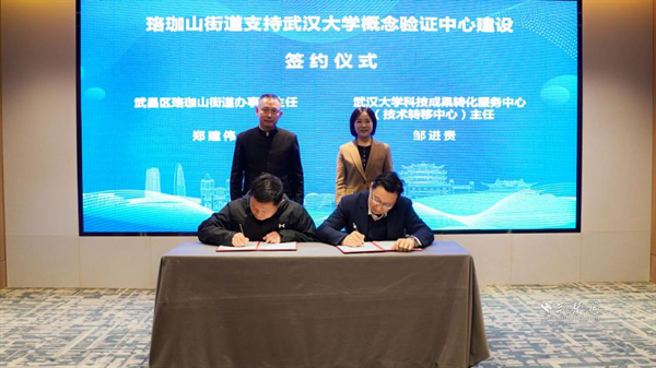 武昌區(qū)珞珈山街道與武漢大學(xué)科技成果轉(zhuǎn)化服務(wù)中心現(xiàn)場簽約。 通訊員供圖