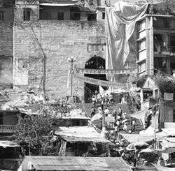 (圖1)西陵峽兵書寶劍峽口,村民正忙著蓋新樓房。 (圖2)一名兒童在已拆得面目全非的房屋前玩耍。 (圖3)奉節(jié)老城開濟(jì)門城墻如今只剩殘垣斷壁。 (圖4)祖孫倆坐在云陽老縣城二期水位標(biāo)牌前。 (圖5)奉節(jié)縣居民在新縣城百米速寫畫墻上覓舊城蹤影。 (圖6)萬州老城最繁華的勝利街只留下了指示路牌。 ______________________________________________________