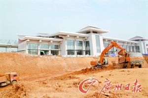 車站仿三國建筑 赤壁站,就在市政府背后。10月27日,映入記者眼簾的是一個(gè)忙碌的建筑工地。