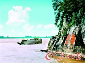 在赤壁縣城西邊的赤壁古戰(zhàn)場,如今依然江水滔滔。當(dāng)年“赤壁之戰(zhàn)”,經(jīng)此一役,定下三分天下格局。李白詩曰:“二龍爭戰(zhàn)決雌雄,赤壁樓船掃地空。烈火張?zhí)煺赵坪,周瑜于此破曹公。”夕陽西下,紅色的陽光灑在江面上,怎不讓人想起那烽火連天的三國?
