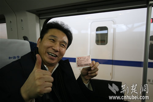 田克兢接受記者采訪時表現(xiàn)得格外興奮,他還高興地向記者展示了車票。他說,早就在關注武漢高鐵了,能有機會親自體驗,實在激動。