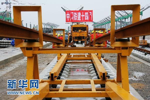資料圖片:7月17日,中國鐵建十四局集團(tuán)京滬高鐵鋪軌工班的工人們正在鋪設(shè)通道,為正式鋪軌進(jìn)行準(zhǔn)備。京滬高鐵先導(dǎo)試驗(yàn)段北段將于7月19日開始率先從徐州向蚌埠鋪軌,南段將于8月中旬從南京向蚌埠鋪軌,10月底將完成試驗(yàn)段鋪軌。京滬高速鐵路全長1318公里,全線縱貫京津滬三大直轄市和河北、山東、安徽、江蘇四省,是我國目前最長的客運(yùn)專線之一。新華社發(fā)(劉文攝)