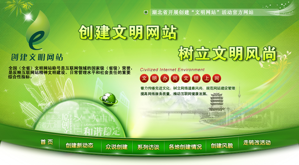 首屆湖北省文明網(wǎng)站評(píng)選擬授予13家網(wǎng)站“首屆湖北省文明網(wǎng)站”稱號(hào),授予10個(gè)頻道“首屆湖北省互聯(lián)網(wǎng)文明頻道”稱號(hào),授予20家網(wǎng)站“首屆湖北省‘文明網(wǎng)站’創(chuàng)建活動(dòng)先進(jìn)單位”稱號(hào)。
