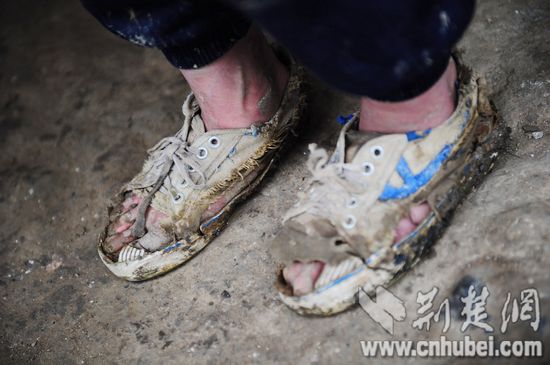 在大方縣興隆村,小女孩高燕穿的球鞋讓人觸目驚心。五個腳趾全露在外面,鞋面與鞋底僅靠幾根棉絲相連,高燕一直都是靠這雙鞋爬山上學(xué),到了學(xué)校再換上好一點(diǎn)的球鞋。